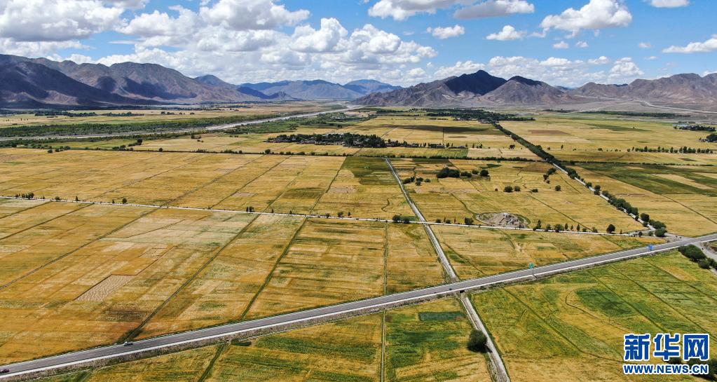 俯瞰西藏日喀則市白朗縣的農田(2019年8月31日攝,無人機照片)。新華社記者 晉美多吉 攝