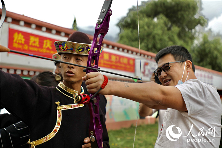 記者現(xiàn)場體驗響箭。人民網(wǎng) 次仁羅布攝