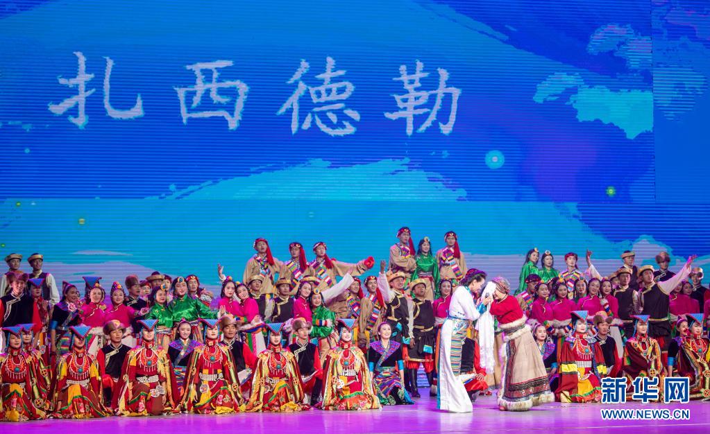 8月19日,慶祝西藏和平解放70周年文藝演出《西藏兒女心向黨》在拉薩西藏人民會堂精彩上演。新華社記者 翟健嵐 攝