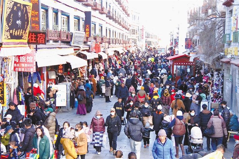 沖賽康市場、八廓商城、拉薩市區各大小超市……熱鬧非凡、人頭攢動,處處都是為了采購藏歷新年年貨樂此不疲的居民群眾,耳邊盡是熟悉的吆喝聲,到處都是歡樂與喜慶。
