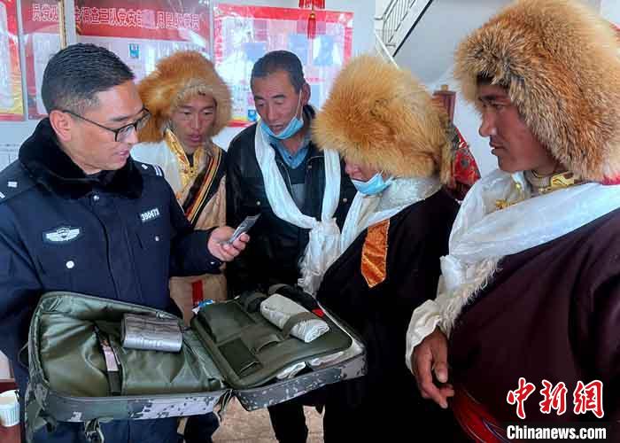 圖為民警向民眾敬獻哈達 。柳志軍 攝
