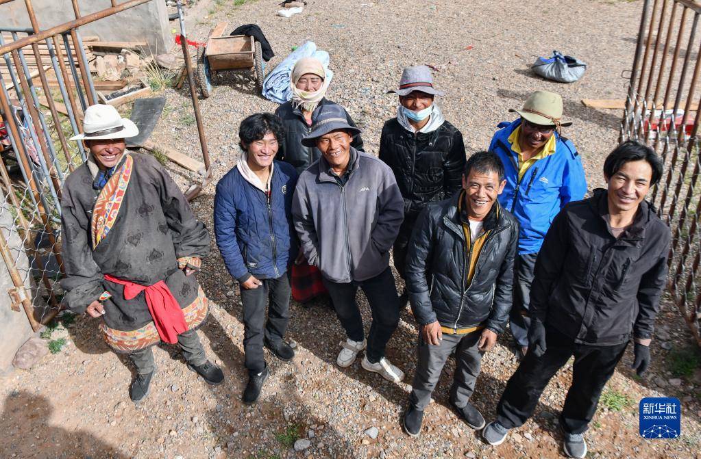 雙湖縣多瑪鄉果根擦曲村的牧民在一起搬家時合影留念(7月13日攝)。新華社記者 晉美多吉 攝