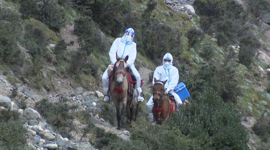 西藏地廣人稀,農牧民居住較為分散,為實現核酸檢測“應檢盡檢、不漏一人”,基層防疫工作人員紛紛采取徒步、騎馬、駕駛摩托車等方式,把核酸采樣服務點對點地送到偏遠農牧區。
