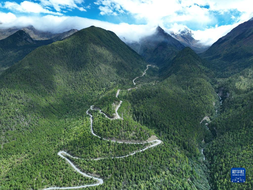 這是2022年9月30日拍攝的派墨公路派鎮起點路段(無人機照片)。新華社發(董志雄 攝)