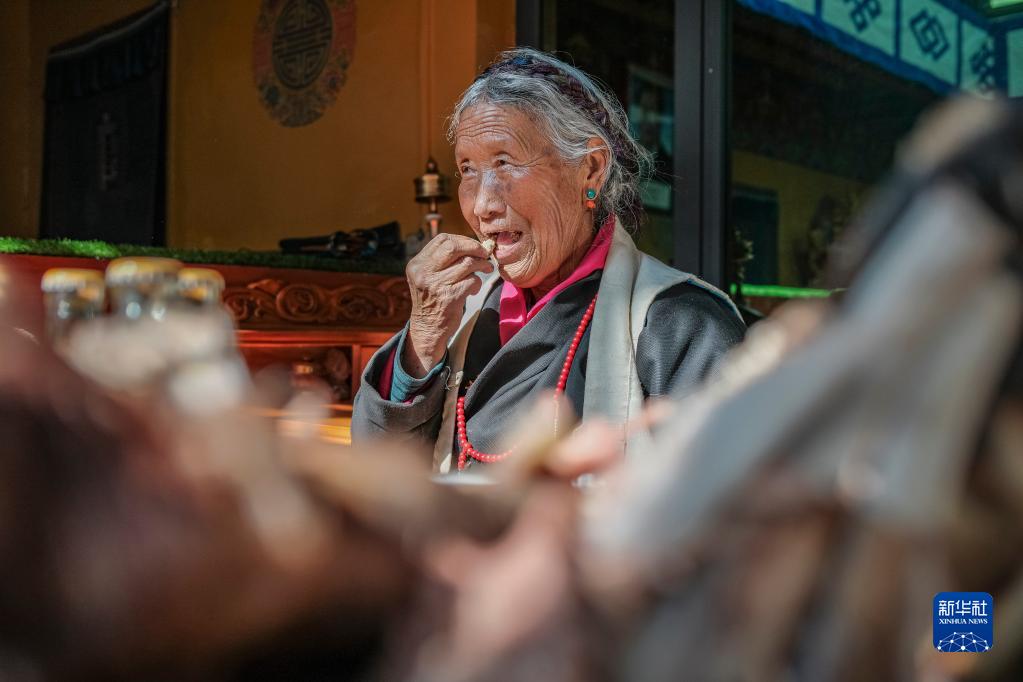 “小時(shí)候過年也有羊頭、切瑪可以吃。”次旦老人說,“但和今天不同的是,即便是一年中最豐盛的一頓飯,我們也只能吃兩口嘗個(gè)味道,沒辦法敞開肚子吃飽。”