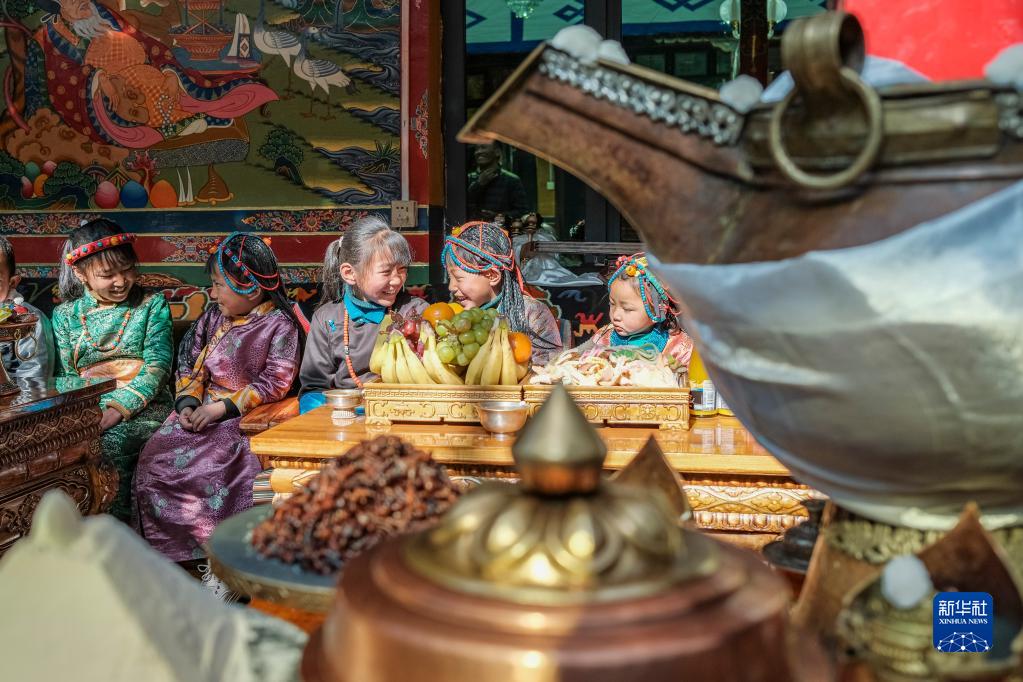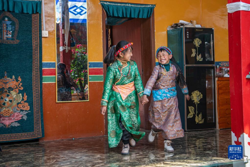 今年,日喀則藏歷農(nóng)家年和春節(jié)“巧遇”同一天,雖習(xí)俗不同,但年味皆濃。次旦的兒孫早早開車去縣城采買了年貨,兒媳婦們?cè)诩覝?zhǔn)備過年吃的羊頭、切瑪?shù)葌鹘y(tǒng)特色美食。家中的第四代,次旦老人的重孫子和重孫女們,則穿上了漂亮的藏裝,頭戴綠松石點(diǎn)綴的頭飾,在家中歡快地跑來跑去。