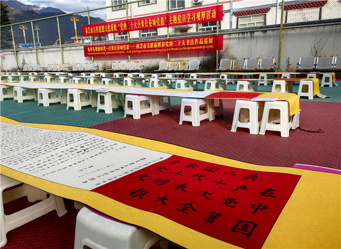 創新載體,全方位宣傳。林芝市統籌各類宣傳資源,線上線下同頻共振,全方位、多角度、寬領域、深層次宣傳黨的二十大精神和區黨委十屆三次全會、市委二屆三次全會精神,營造學習宣傳的濃厚氛圍。一是新聞宣傳強信心。林芝報、林芝廣播電視臺、西藏林芝網、微林芝等市屬主流媒體紛紛開設《學習貫徹黨的二十大》《新時代新征程新偉業》等多個專題專欄,持續推出學習貫徹黨的二十大精神相關報道。截至目前,共刊播《基層宣講員讓黨的二十大精神翩翩飛入百姓家》《軍民共話美好未來 繪就美麗鄉村新畫卷》等相關新聞2500余條。二是社會面宣傳筑同心。采取“屏、板、欄、幅”立體宣傳方式,在全市各級黨政機關和企事業單位大門LED電子顯示屏以及市、縣城區主要街道、跨街龍門、出租車頂燈、汽車站等公共場所的宣傳媒介上滾動播放自治區統一印發的宣傳標語1.2萬余條次,更新懸掛國旗3.5萬余面,制作發放宣傳海報1.5萬張、宣傳品2500余個,形成抬頭可見、隨處可學的濃厚社會氛圍。察隅縣上察隅鎮遲巴村村“兩委”和駐村工作隊用彩色粉筆繪制黨的二十大、“新黨章”等主題黑板報,用畫筆向村民傳遞黨的最新政策,深受群眾喜愛。三是網絡宣傳聚民心。充分發揮新媒體平臺宣傳形式豐富的特點,持續推送重磅報道和重點文章,策劃打造一批融媒體產品,在全網迅速興起學習宣傳貫徹會議精神熱潮。市委網信辦策劃制作短視頻《學習黨的二十大精神 談心得感悟》、“林芝融媒”抖音號推出《二十大時光》微視頻,將鏡頭對準二十大代表、基層黨員群眾,展現全市干部群眾積極向上的良好風貌。“巴宜融媒”抖音號推出“黨的二十大精神快問快答”系列活動,線上線下聯動學習,推動黨的二十大精神入腦入心。“察隅融媒”抖音號策劃開展《鄉村振興正當時》黨的二十大主題抖音直播活動,通過網絡直觀展現新時代察隅新農村、新氣象、新希望。目前已開展7場直播活動,觀看人數達10萬人次。四是文藝宣傳暖人心。充分發揮市、縣(區)、村三級文藝文化團體作用,組織開展“深入生活 扎根人民”“幸福不忘共產黨 陽光路上夢起航”等各類文藝文化活動,精心打造文藝精品力作,用文藝活動、文藝作品溫暖人心。截至目前,各級文藝演出隊開展文藝匯演293場次,參與人數4.2萬余人次;創作推出音樂作品《沐浴幸福》、攝影作品《我和國旗》、書法美術作品《建功新時代 奮進新征程》、文學作品《黨的光輝照萬家》等文藝作品300余個。波密縣完全小學在崗云杉林景區組織開展“學習黨的二十大,爭做好少年”采風寫生活動,學生們以文藝創作的形式學習黨的二十大精神,并將學習成果轉化到作品中。市民族藝術團以深入挖掘歷史文化、講好紅色故事為主題,籌拍了微電影《立定村屹立的紅旗》。市文聯書法美術家協會理事茹輝春同志,在黨的二十大召開后用行、楷兩種書法形式撰寫了黨的二十大報告全文書卷,書卷共有八卷,每卷長30米。市委宣傳部、市文廣局、市文聯組織市書法美術家協會開展“禮贊二十大·送福進萬家”林芝市2023年新春書法美術家“深入生活 扎根人民”送祝福和采風活動,共開展送春聯活動15場次,送出對聯、福字、掛軸、繪畫等作品8950幅(對),服務群眾6700余人次。