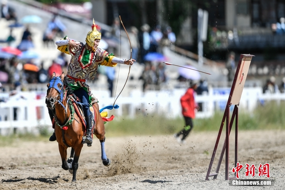 8月17日,騎手們進行馬術(shù)表演。當(dāng)日,2023年拉薩雪頓節(jié)民族傳統(tǒng)馬術(shù)表演在西藏拉薩市北郊賽馬場舉行。