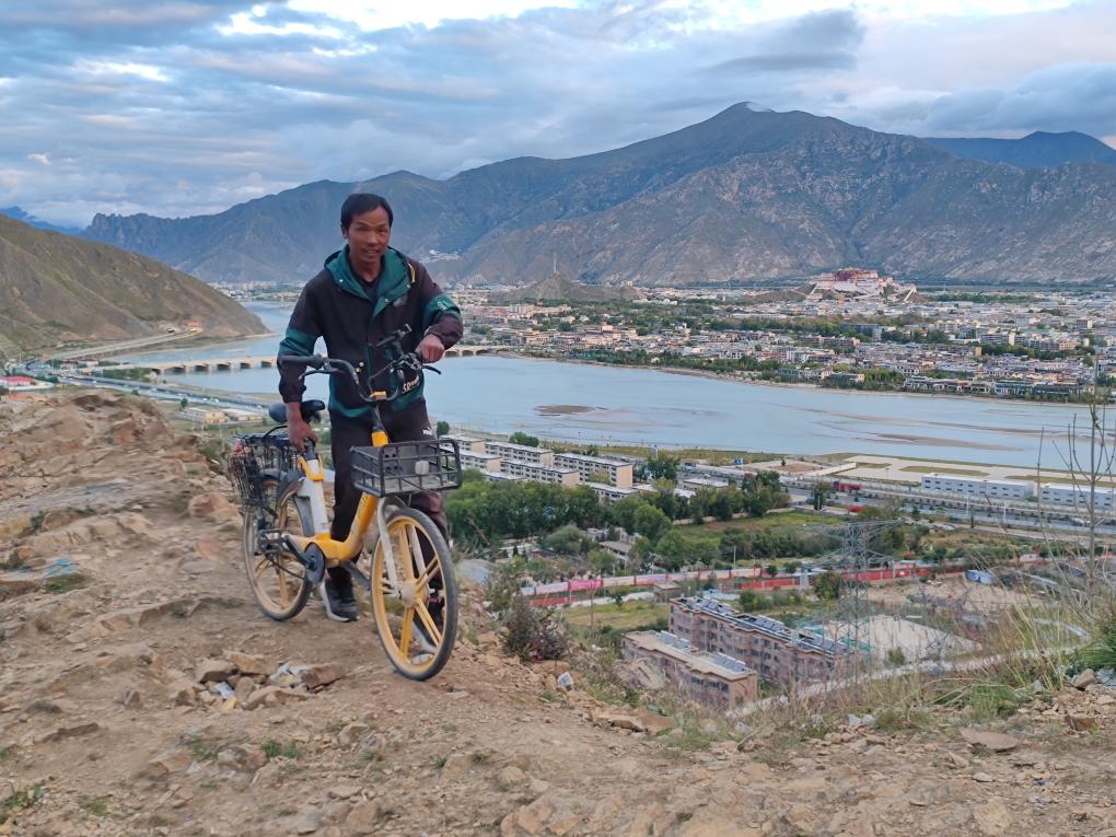 王賢日騎車跨過位于西藏左貢縣境內的東達山埡口