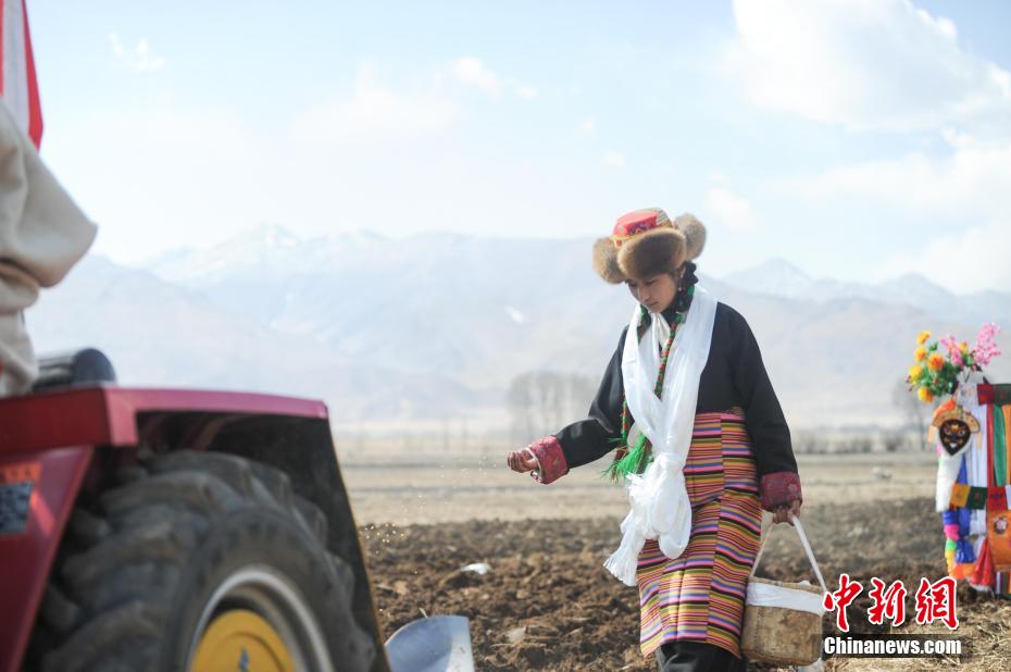 3月16日,西藏拉薩迎來一年一度盛大的傳統春耕儀式。當日是藏歷正月二十四日,按照藏歷傳統,是西藏農區開耕的日子。林周縣村民身著節日盛裝,家家戶戶端著自家的“切瑪”(象征五谷豐登)帶著青稞酒、酥油茶等物品聚在田間,互敬青稞酒,開始撒種,祈求全年風調雨順、五谷豐登。貢嘎來松 攝
