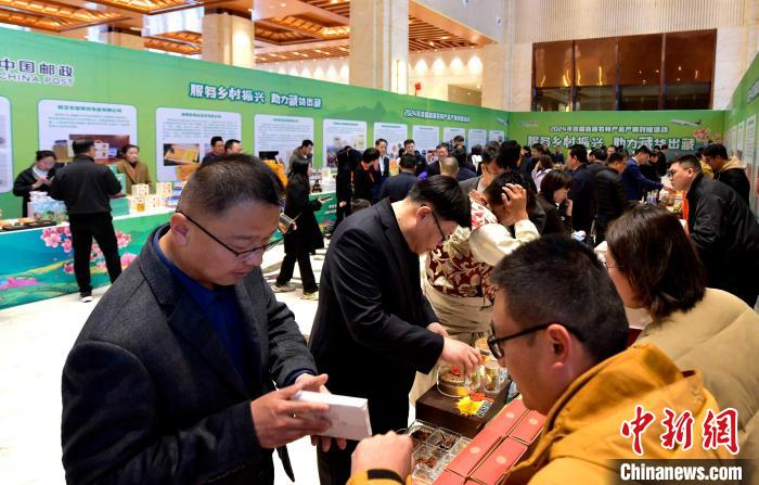 圖為高原農特產品產銷對接活動現場,各省郵政公司有關負責人與企業對接。李林 攝
