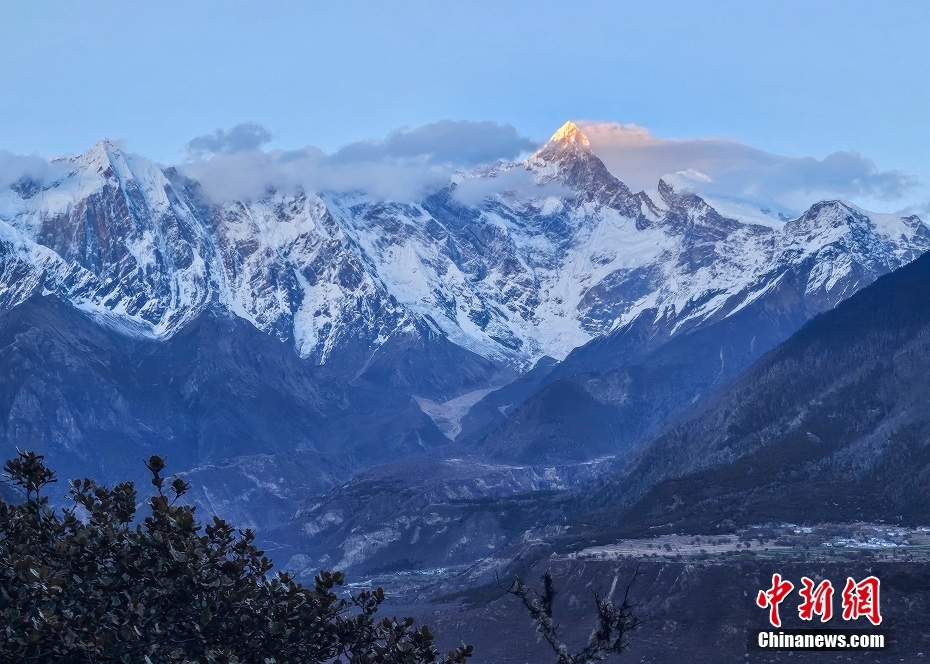 圖為南迦巴瓦峰顯露出“日照金山”的美景。中新社記者 貢嘎來(lái)松 攝