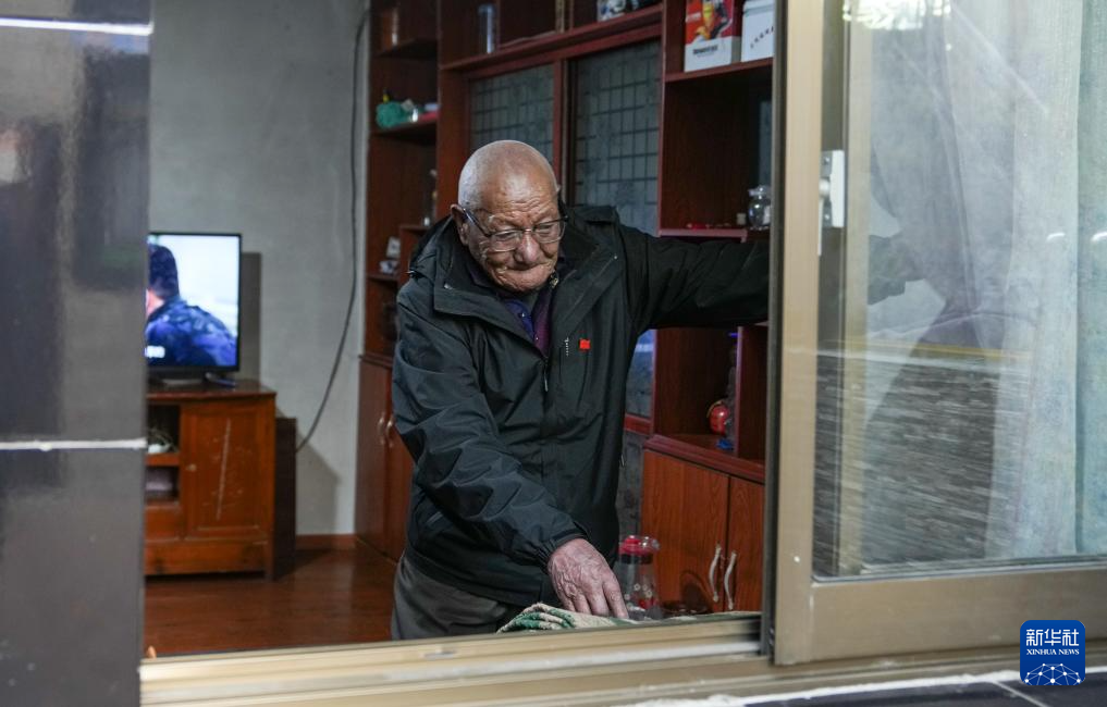 益西桑珠在家拉上窗簾準備收看藏語電視節目(3月13日攝)。新華社記者 晉美多吉 攝