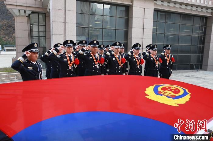 2日,西藏吉隆出入境邊防檢查站在吉隆口岸舉行戍守邊疆紀念章頒發儀式,20名移民管理警察獲頒銅制戍邊紀念章。