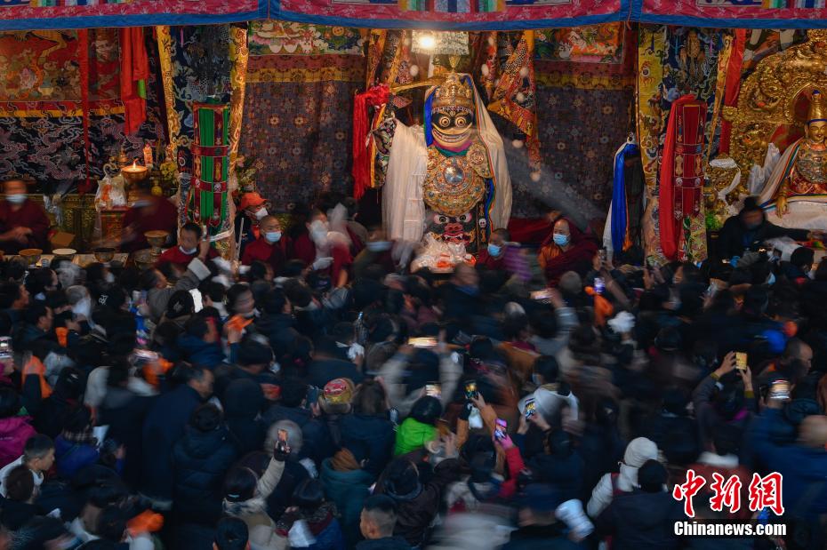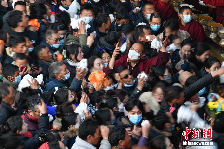 12月15日即藏歷十月十五日是藏族傳統的節日“白來日追”,俗稱“仙女節”、“白拉姆節”等。相傳藏傳佛教最高護法神之一班丹拉姆的女兒白拉姆,不顧母親的反對與赤尊贊私定終身,班丹拉姆一怒之下將赤尊贊趕到拉薩河南岸,規定二人僅每年的藏歷十月十五日相見。圖為工作人員將青稞酒倒入女神白拉姆像前的酒壇。