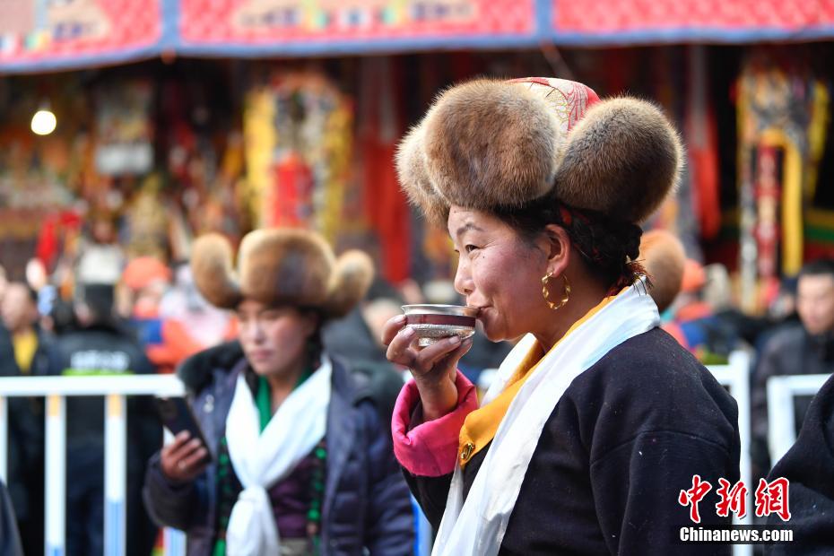 12月15日即藏歷十月十五日是藏族傳統的節日“白來日追”,俗稱“仙女節”、“白拉姆節”等。相傳藏傳佛教最高護法神之一班丹拉姆的女兒白拉姆,不顧母親的反對與赤尊贊私定終身,班丹拉姆一怒之下將赤尊贊趕到拉薩河南岸,規定二人僅每年的藏歷十月十五日相見。圖為一位藏族婦女品嘗青稞酒。