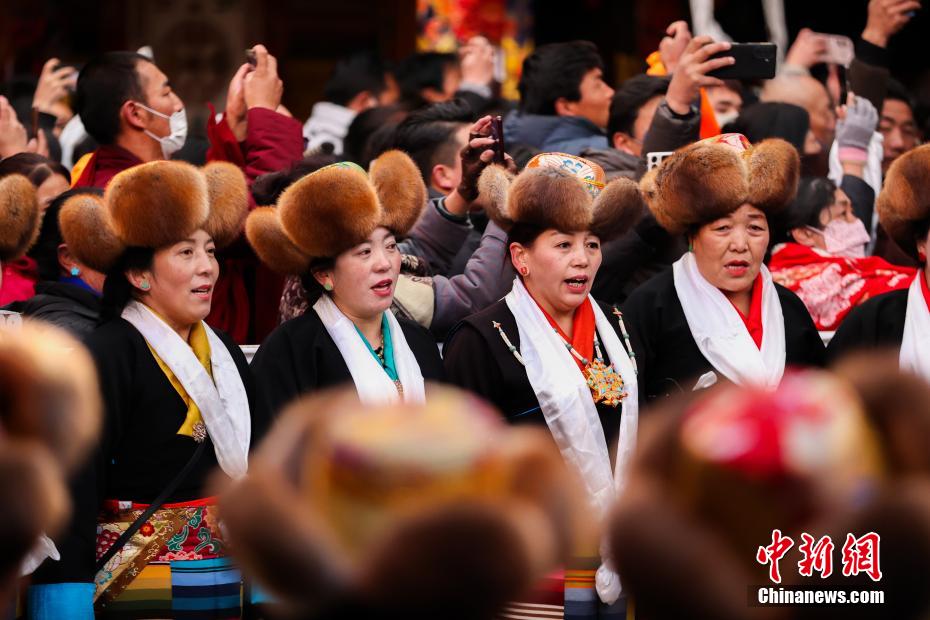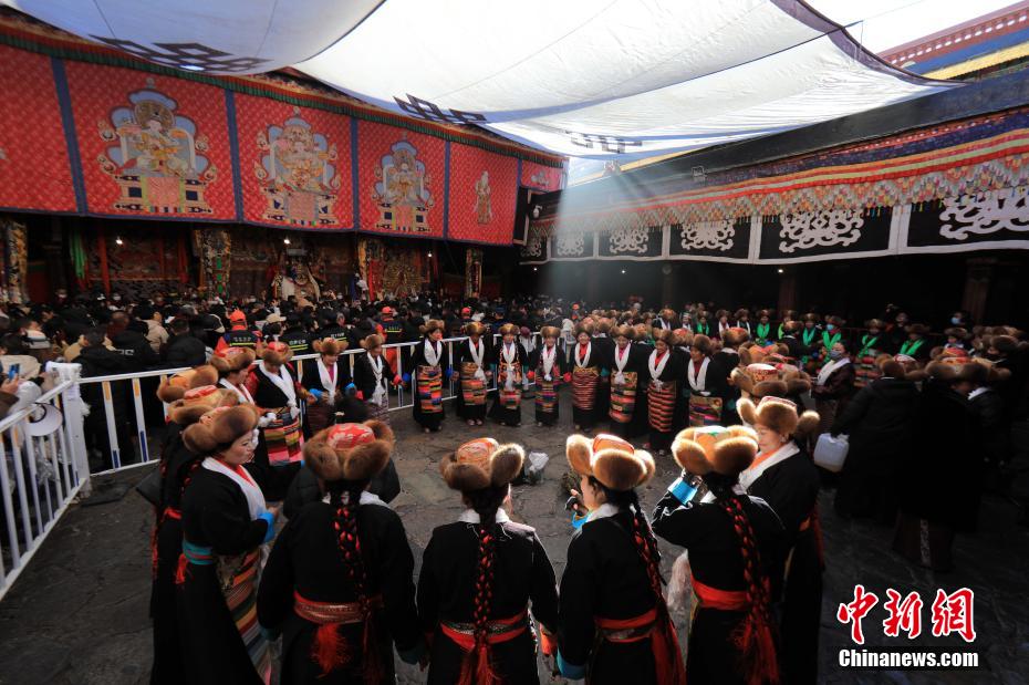 12月15日即藏歷十月十五日是藏族傳統的節日“白來日追”,俗稱“仙女節”、“白拉姆節”等。相傳藏傳佛教最高護法神之一班丹拉姆的女兒白拉姆,不顧母親的反對與赤尊贊私定終身,班丹拉姆一怒之下將赤尊贊趕到拉薩河南岸,規定二人僅每年的藏歷十月十五日相見。圖為身著民族服裝的信眾在大昭寺內載歌載舞。