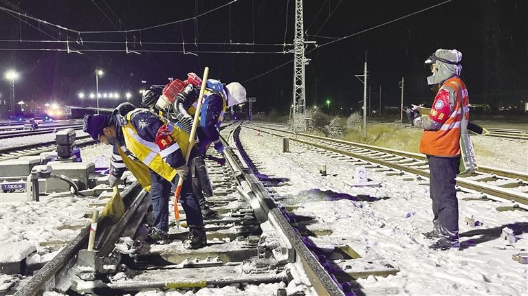 “拉薩西貨場大雪,需要人工對站內道岔的積雪進行清掃。”2時30分,接到段安全指揮中心的掃雪通知后,中國鐵路青藏集團有限公司拉薩基礎設施段拉薩綜合維修車間拉薩西信號工區和拉薩西線路工區的23名青工迅速行動起來。他們穿上厚重的棉大衣,戴上防寒帽,拿起掃雪工具,在冰雪中深一腳淺一腳地朝著道岔的方向走去。