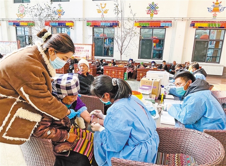 近日,浪卡子縣中心人民醫院醫療團隊開展免費體檢公益活動,為浪卡子縣五保戶集中供養中心的特困人員送去關懷。