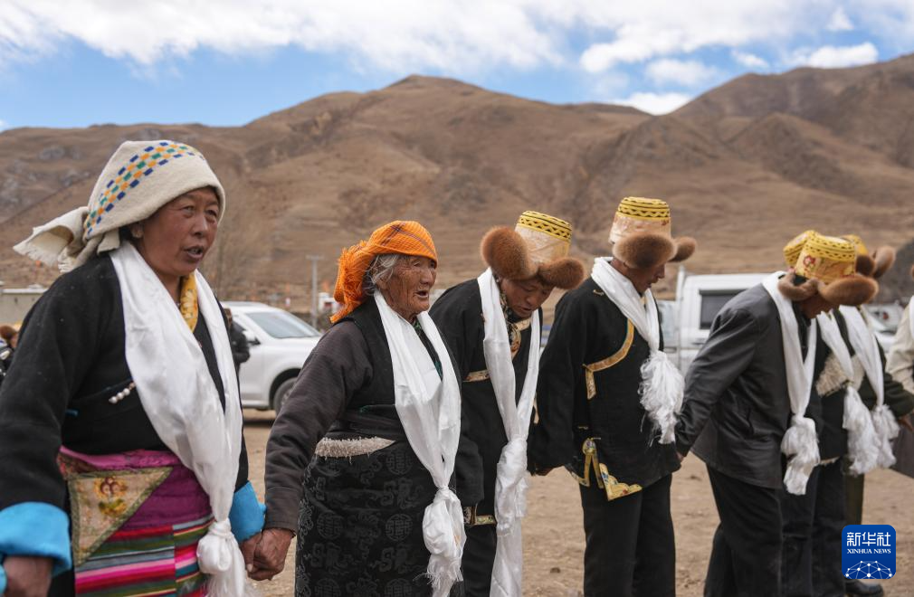 在春耕大典上,白姆老人和鄉親一起跳鍋莊(3月16日攝)。新華社記者 晉美多吉 攝