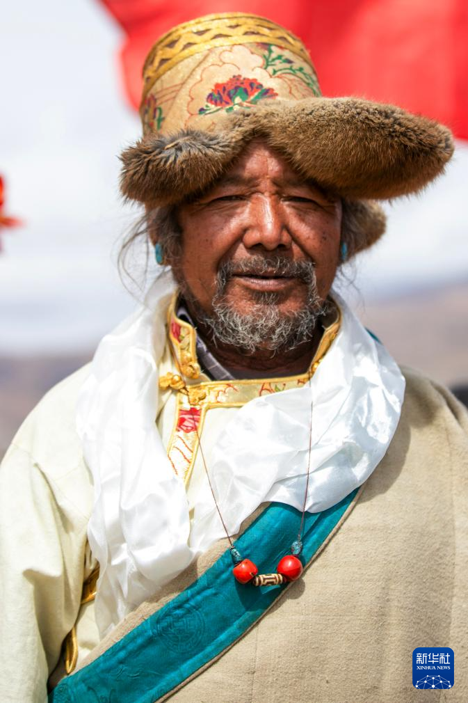 作為村中長者,尼瑪在春耕儀式上吟唱祝福豐收的歌謠(3月16日攝)。新華社記者 姜帆 攝