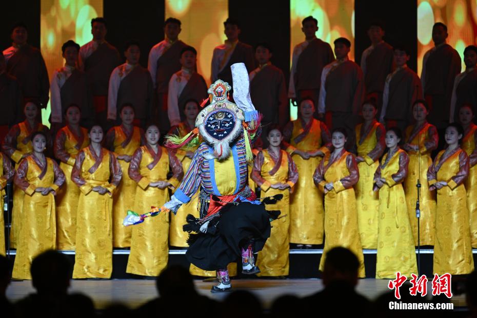 3月27日晚,為紀念西藏百萬農奴解放66周年,由中共拉薩市委、拉薩市人民政府主辦,拉薩市委宣傳部承辦的“盛世中國幸福西藏”拉薩市紀念西藏百萬農奴解放66周年群眾合唱比賽,在拉薩市群眾文化體育中心激昂上演。據悉,本次合唱比賽共有11支隊伍,由拉薩市各縣(區(qū))、功能園區(qū)、農牧民群眾、企業(yè)職工等組成。所有演唱者們精神飽滿,歌聲或激昂有力,或深情婉轉,歌頌西藏66年來從黑暗走向光明、從貧窮走向富裕的偉大跨越。圖為拉薩市堆龍德慶區(qū)代表隊在演唱《天路》前表演藏戲。