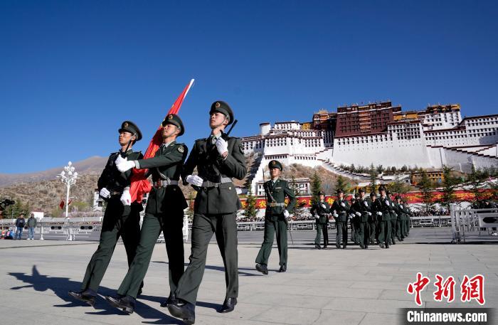 3月28日,“3·28”西藏百萬農奴解放66周年“升國旗、唱國歌”儀式在拉薩舉行。貢嘎來松 攝