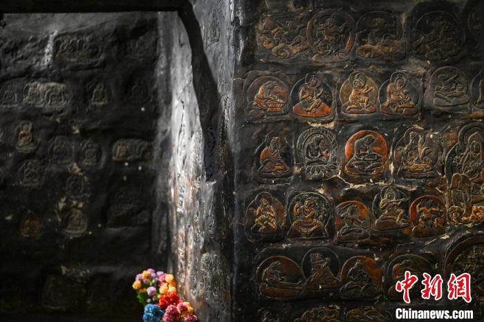 4月27日,記者探訪(fǎng)了當(dāng)雄縣貢堂鄉(xiāng)沖嘎?tīng)柎蹇雕R寺的瑪尼拉康。瑪尼拉康是該寺除修行洞之外的早期宗教活動(dòng)場(chǎng)所,也是寺院里最古老的建筑。這里保存著令人驚嘆的石刻造像墻,這些石刻距今已有三百年歷史。瑪尼拉康外觀普通,但其室內(nèi)六面墻上整齊地貼滿(mǎn)了浮雕石刻板,共計(jì)1213塊(僅一塊缺失)。石刻內(nèi)容豐富,涵蓋了藏傳佛教各宗各派的本尊、祖師、佛母菩薩等,造型多姿多樣,線(xiàn)條清晰流暢。這處石刻造像墻對(duì)于研究西藏傳統(tǒng)雕刻、藏傳佛教以及歷史具有重大意義。中新社記者 貢嘎來(lái)松 攝