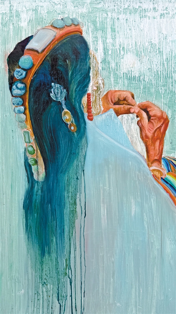 曹夢油畫作品《盼日》。