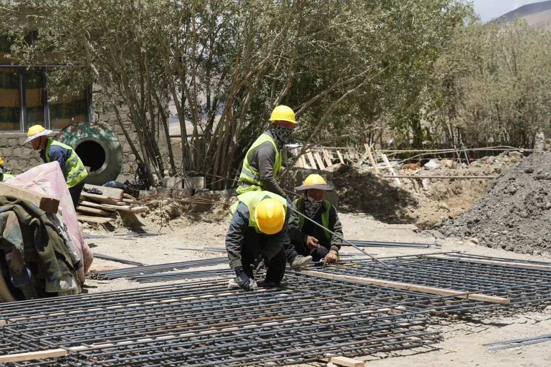 當夜幕籠罩村莊,大風呼嘯,旺加仍未歸家。他戴上安全帽,出現在燈火通明的工地。機械轟鳴,人聲交織。旺加仔細巡視基坑、鋼筋,履行監督之責;順手遞工具,用帶著藏語腔調的漢語講著接地氣的笑話驅散疲憊。