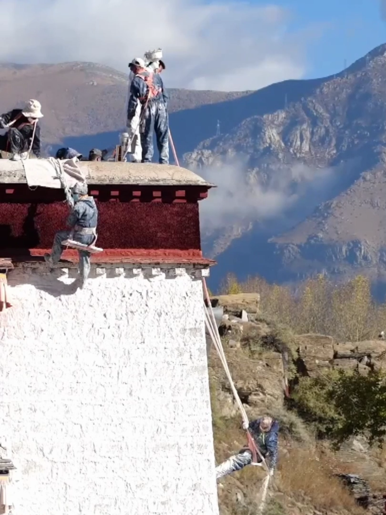 布達拉宮每年進行的墻體粉刷工程被稱作“甜蜜換裝”;維修科裁縫組負責布達拉宮毛氈、布料等物品的制作與修復;維修科木工組負責布達拉宮木構件的修繕、更換與保養。陽光下,雪域高原各族人民共同守護著這座世界之巔的文化遺產。