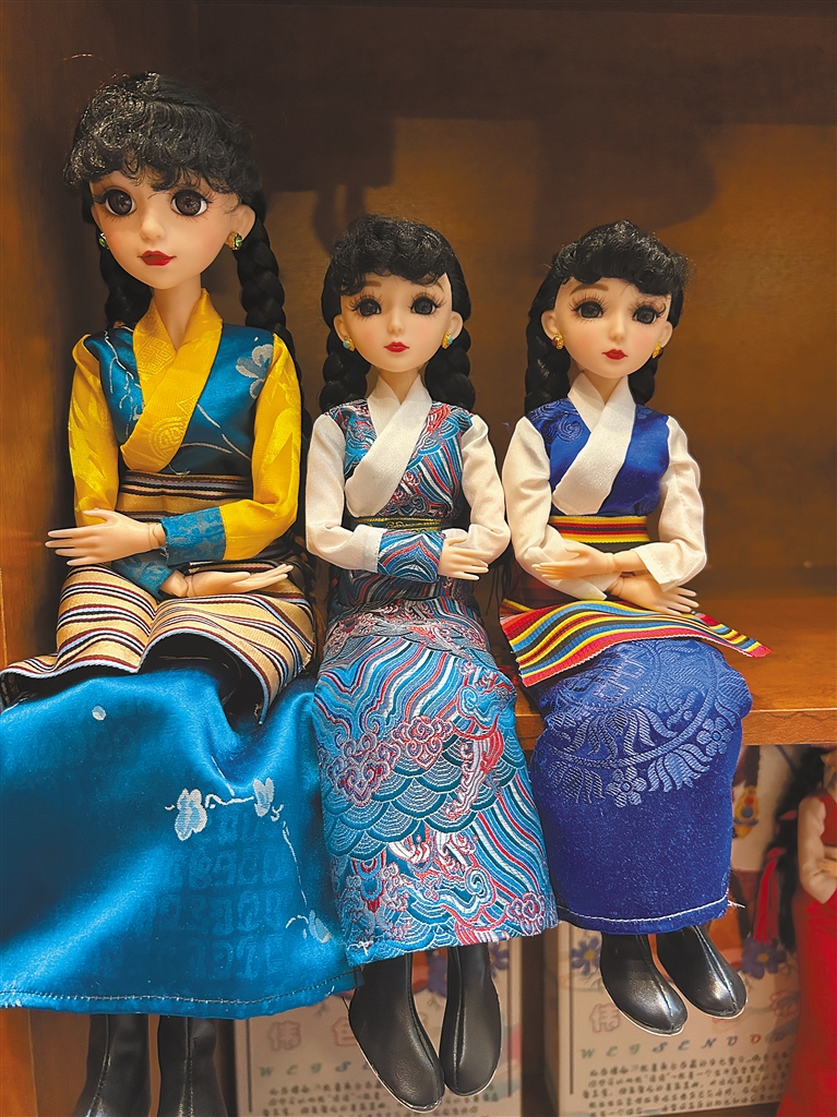 當行至二樓文創區,一隅活力景象,驟然點亮歷史的深沉,一排排“拉颯姑娘”布娃娃,身著華麗藏裝靜靜佇立,吸引游客駐足流連。