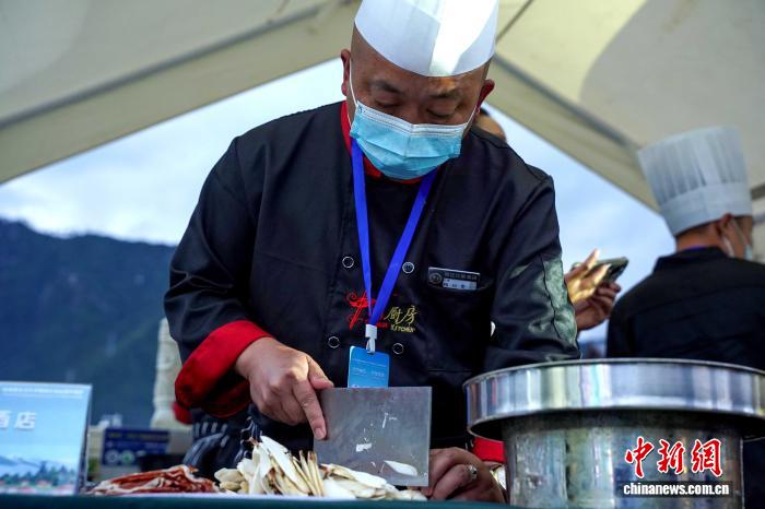圖為2025年林芝松茸美食文化節暨特色商品展銷活動期間,廚師現場制作松茸菜品。林芝市巴宜區城鄉供銷有限公司供圖