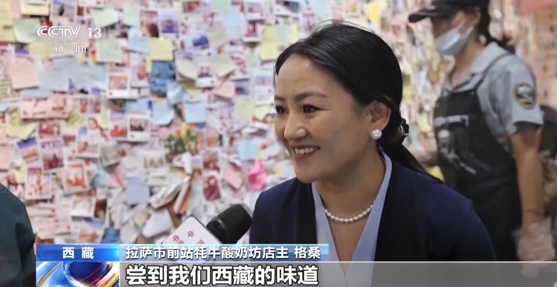 拉薩市前站牦牛酸奶坊店主 格桑:牦牛奶不能夠超過三個小時,超過三個小時就會壞。路好了之后,我們就可以到更遠的地方去采購更新鮮的牦牛奶,包括蛋糕上面的青稞粉是日喀則的,人參果是從那曲運過來的,現在交通便利了,所以我們可以用最地道的食材做最地道的酸奶,也能讓天南地北的游客嘗到我們西藏的味道。