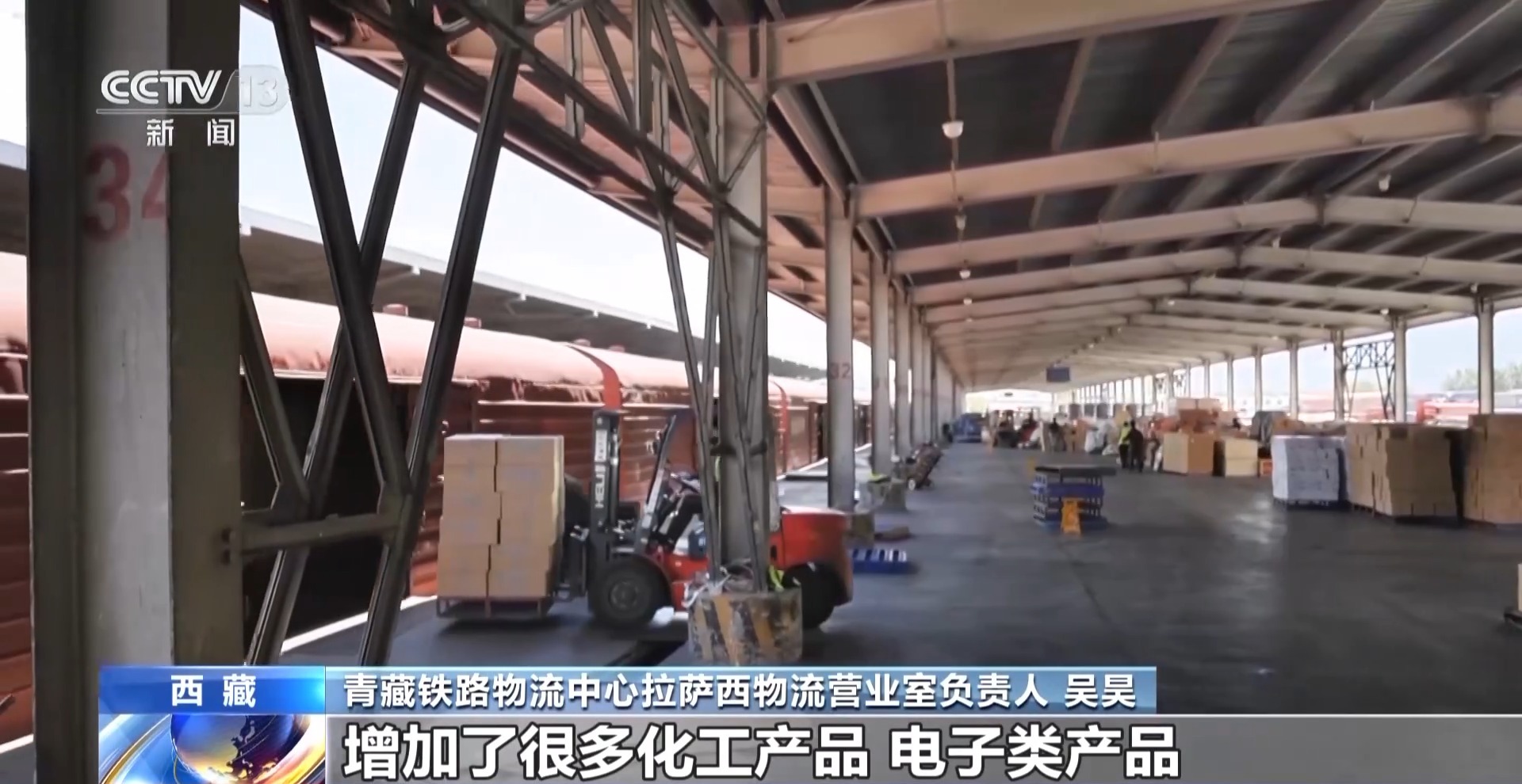 青藏鐵路物流中心拉薩西物流營業室負責人 吳昊:以前我們這邊到達量還是比較單一的,也就是一些糧食、飲料、建材之類的,現在到達的物品比較多元,增加了很多化工產品、電子類產品。