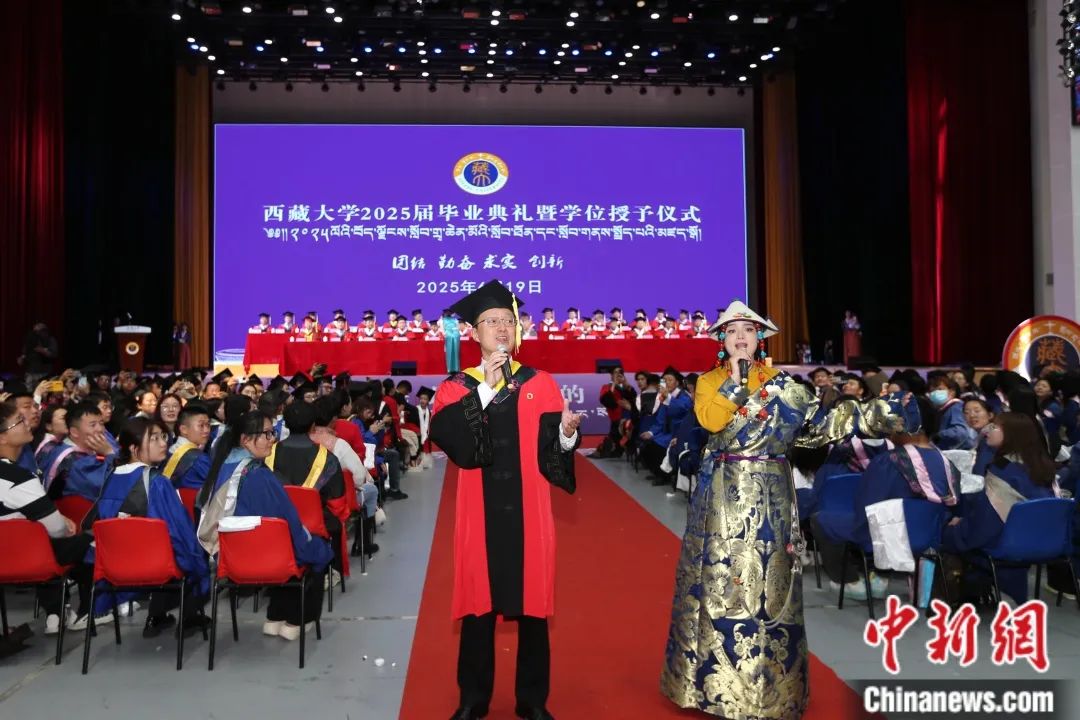 圖為在西藏大學畢業典禮上師生合唱《珠穆朗瑪》。西藏大學供圖
