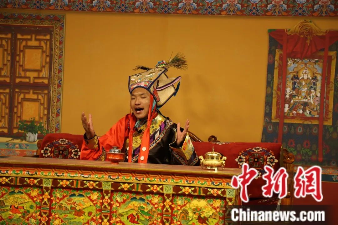 圖為藝術學院學生進行扎念演奏表演。西藏大學供圖