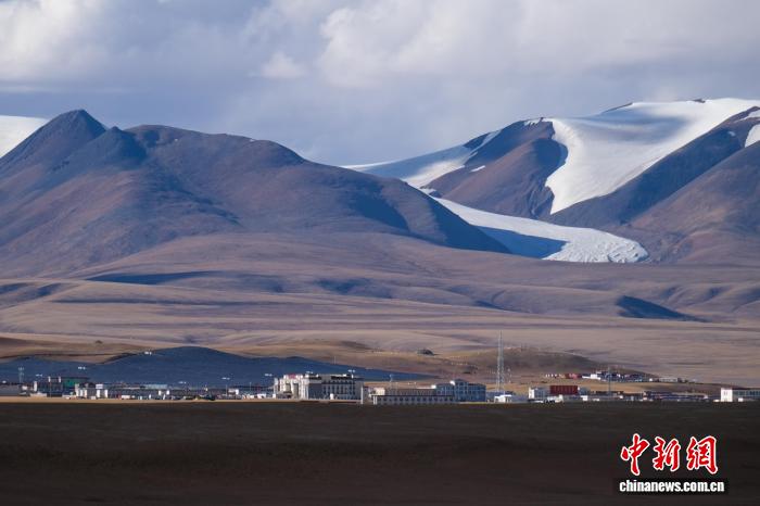 圖為2024年10月2日,遠眺西藏自治區那曲市雙湖縣城和縣城附近的冰川。江飛波 攝