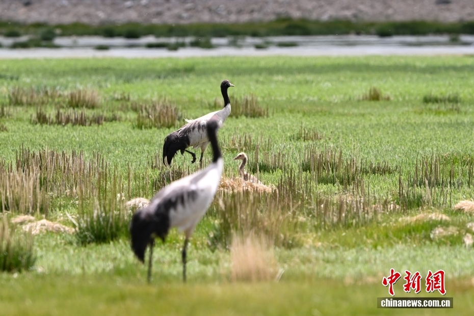 在海拔4700米的西藏自治區(qū)那曲市申扎縣濕地里,黑頸鶴一家在悠閑覓食。黑頸鶴是中國國家一級(jí)重點(diǎn)保護(hù)野生動(dòng)物,屬高原特有鶴類,主要棲息于海拔2500米至5000米的高原沼澤地、湖泊及河灘等濕地環(huán)境。每年四月起,成對(duì)的黑頸鶴陸續(xù)飛抵西藏自治區(qū)那曲市申扎縣,在此繁育后代。中新社記者 貢嘎來松 攝