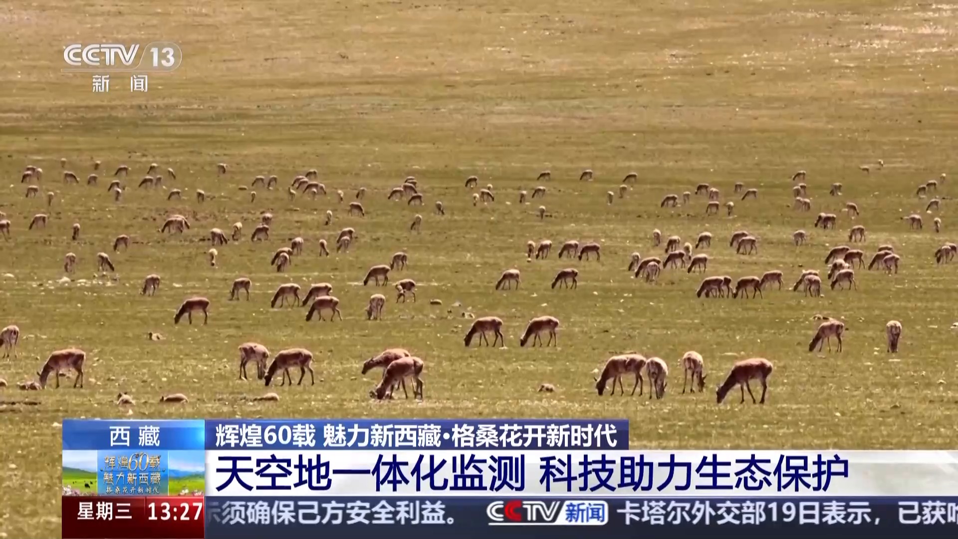 總臺記者 盧柯宇:這里是三江源國家公園唐北區(qū)域,這片遼闊壯美的土地,正是我身邊的藏羚羊的棲息地,也是青藏高原第二大藏羚羊產(chǎn)仔地。每年這個時(shí)節(jié),都是它們?yōu)榉毖芎蟠邸⑦M(jìn)行遷徙的關(guān)鍵時(shí)刻。