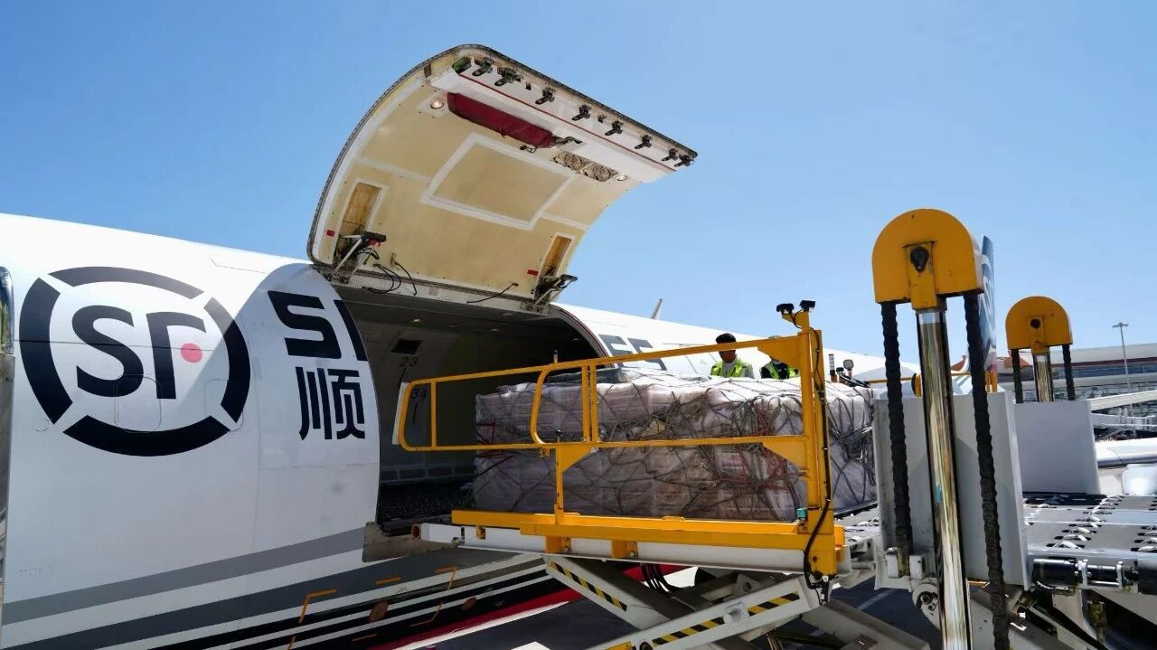 順豐全貨機(jī)貨物裝卸現(xiàn)場(chǎng)