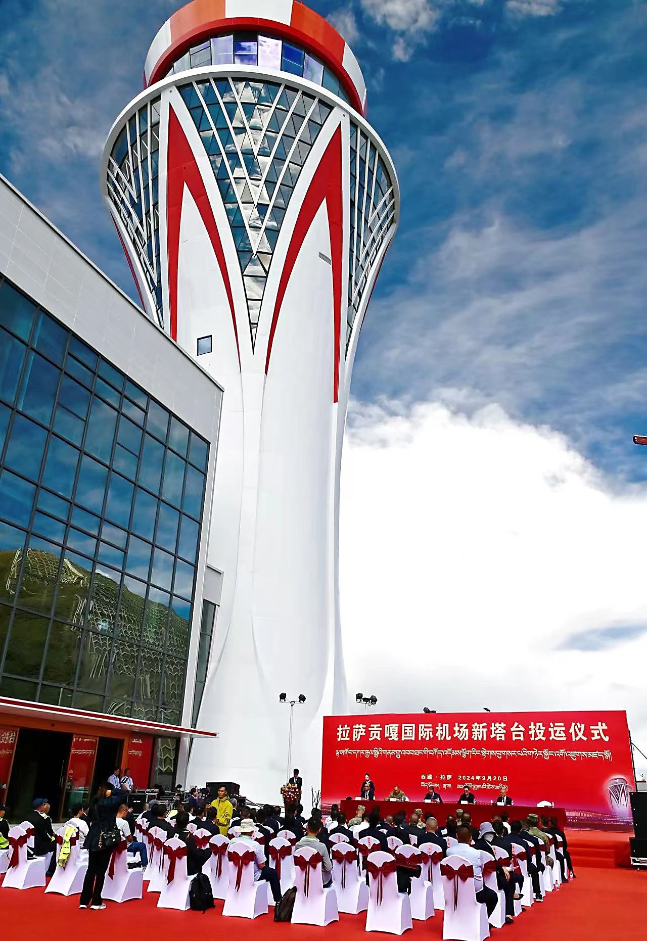 2023年12月26日,拉薩貢嘎機(jī)場(chǎng)新建第二跑道投用,正式進(jìn)入雙跑道運(yùn)行時(shí)代,成為國(guó)內(nèi)首個(gè)使用雙跑道運(yùn)行的高高原機(jī)場(chǎng)。同年12月28日,拉薩貢嘎機(jī)場(chǎng)T2航站樓整體改擴(kuò)建工程建成投用,國(guó)際功能區(qū)正式啟用,樓內(nèi)配備了集中供暖和彌散式供氧系統(tǒng),大幅提升了旅客體驗(yàn)。2024年6月30日,拉薩貢嘎機(jī)場(chǎng)T1航站樓改擴(kuò)建工程建成投運(yùn),成為西藏空港“會(huì)客廳”和藏式建筑的典范;同年7月8日,拉薩貢嘎機(jī)場(chǎng)正式更名為拉薩貢嘎國(guó)際機(jī)場(chǎng),這一名稱(chēng)的變更不僅體現(xiàn)了拉薩貢嘎國(guó)際機(jī)場(chǎng)的國(guó)際化視野和戰(zhàn)略定位,更彰顯了其在西藏民航事業(yè)中的重要地位和作用。同年9月20日,國(guó)內(nèi)建筑面積最大、高度最高的高高原塔臺(tái)——拉薩貢嘎國(guó)際機(jī)場(chǎng)新塔臺(tái)正式投入運(yùn)行。新塔臺(tái)高55.6米,設(shè)置了11個(gè)管制席位,集成了通信、導(dǎo)航、監(jiān)視、氣象等尖端技術(shù),配備了空管CDM系統(tǒng)、數(shù)字空管集成系統(tǒng)等國(guó)產(chǎn)化先進(jìn)設(shè)備,實(shí)現(xiàn)了高度自動(dòng)化和智能化,使管制員能實(shí)時(shí)精準(zhǔn)掌握空中和地面動(dòng)態(tài)。