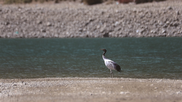 近日,記者在墨竹工卡縣境內下鄉途中偶遇驚喜——幾只黑頸鶴悄然現身墨竹工卡縣直孔水電站附近的水域,它們正是今年首批前來此地越冬的“高原貴客”。通過鏡頭,記者看到黑頸鶴邁著輕盈的步伐,在水邊悠閑地走來走去,不時抬起頭看向遠處。幾只黑頸鶴不時掠過水面,劃開道道漣漪,或在河邊低頭覓食,或閑庭信步梳理羽毛,時而又揮翅舒展身姿,與周邊成群的牛馬、遠處巍峨的雪山及靜謐的湖泊相映成趣,勾勒出一幅人與自然和諧共生的絕美畫卷。在直孔水電站水庫的碧水銀光里,這座水庫正以萬頃之廣潤澤田野、滋養大地生靈,守護著萬物與水共生的亙古契約。