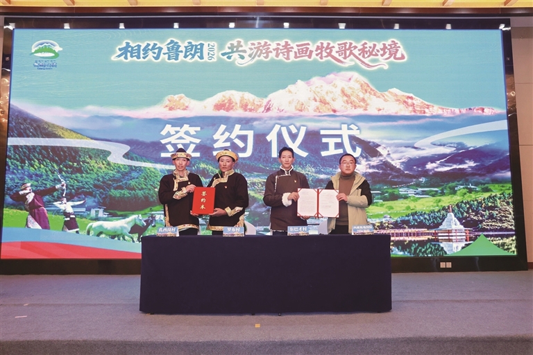 現(xiàn)場(chǎng),還舉行了簽約儀式,魯朗東巴才村、羅布村、扎西崗村村委會(huì)代表與拉薩多家優(yōu)質(zhì)旅行社簽訂合作意向協(xié)議。雙方圍繞文旅深度融合發(fā)展趨勢(shì),聚焦沉浸式體驗(yàn)、定制化旅游等細(xì)分領(lǐng)域展開深入交流,達(dá)成多項(xiàng)合作共識(shí),將進(jìn)一步拓寬魯朗景區(qū)的客源渠道,提升品牌影響力。
