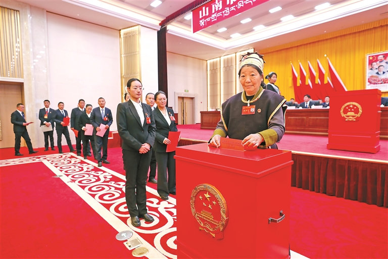 圖為山南市人大代表投票選舉新一屆山南市人大常委會(huì)主任、副主任及委員。