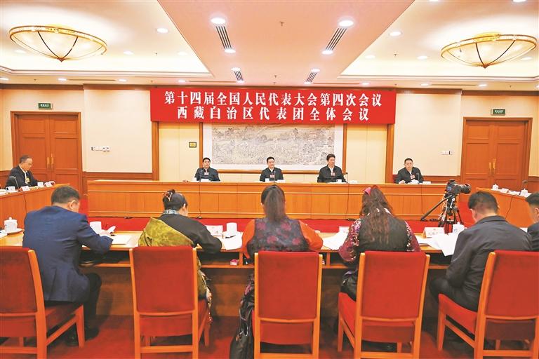 3月9日,西藏代表團舉行全體會議,審議全國人大常委會工作報告、關于法律清理工作情況和有關法律和決定處理意見的報告。