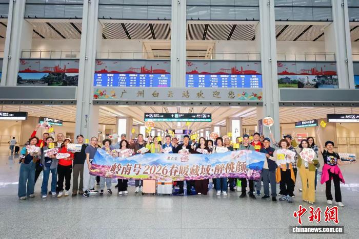 “2026西藏林芝桃花包列”主題系列團21日從廣州出發,近200名游客坐上火車,奔赴雪域高原,邂逅雪山與桃花交織的春日盛景。