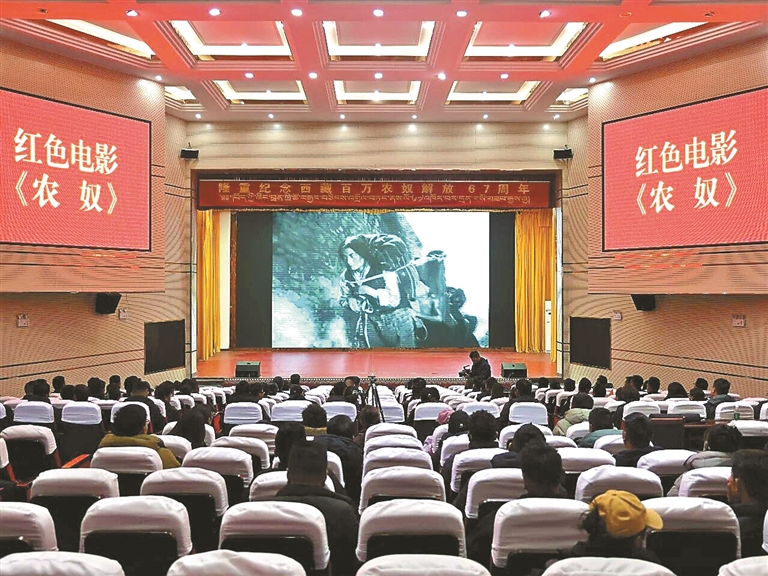 浪卡子縣組織播放紅色電影《農(nóng)奴》,激勵廣大干部群眾聽黨話感黨恩跟黨走。記者 武沛濤 攝