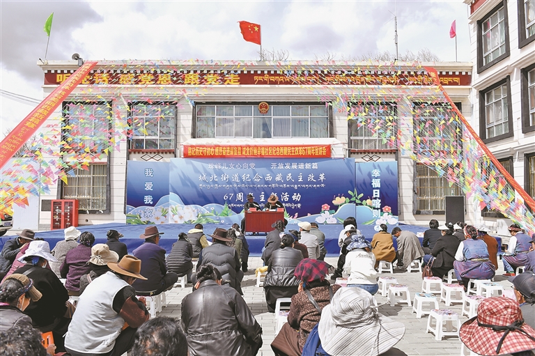 “看著五星紅旗在雪后初晴的藍天白云下升起,我心中無比激動?!蓖诵莞刹堪蜕Q酆瑹釡I,“民主改革前,我從8歲一直到14歲都是奴隸,受盡苦難。是中國共產黨讓我翻身做了自己的主人,如今,退休生活幸福美滿。這份恩情,我會永遠銘記!”