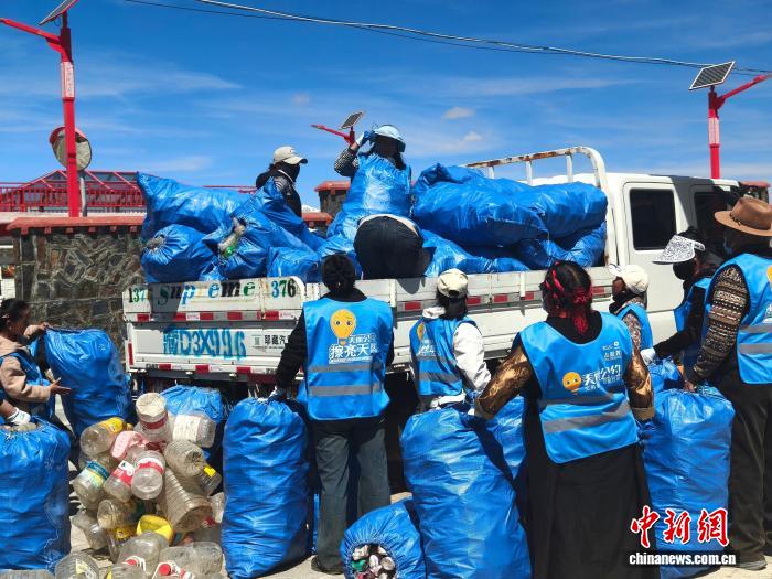 在清明前夕,西藏日喀則市帕里鎮四社區駐村工作隊與社區“兩委”聯合“美麗公約”公益組織,組織“帕里美麗公約環保志愿服務隊”的20名小衛士和10名成人志愿者,在“美麗公約”工作人員的帶領下,對“垃圾銀行”中儲存一年的飲料瓶進行集中分類裝袋。通過“小手拉大手”共同勞動4小時,大家共分裝鋁制易拉罐和塑料瓶共76袋,總重約385公斤。